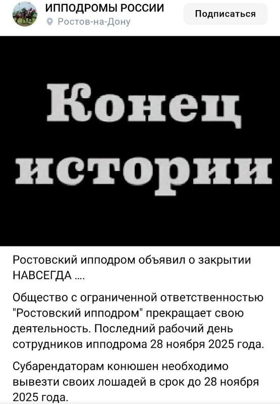 РОСТОВСКИЙ ИППОДРОМ ЗАКРЫТ