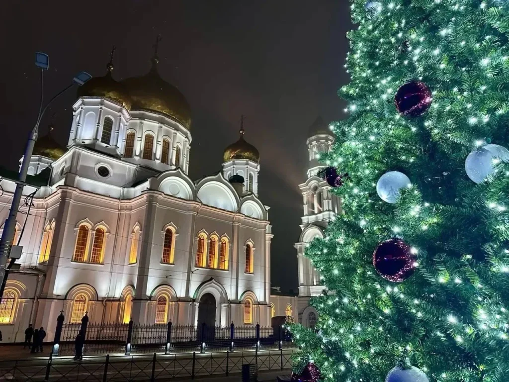 В Рождественскую ночь с 6 на 7 января 2026 года тысячи жителей Ростовской области пришли на праздничные службы. Главную литургию провел митрополит Ростовский и Новочеркасский Меркурий в Кафедральном соборе Рождества Пресвятой Богородицы.