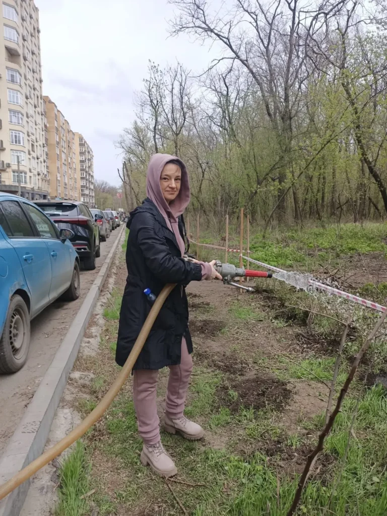 «Участвовало очень много соседей, к нам присоединились друзья и волонтеры. Было более 120 человек. Помогали и застройщик – он организовал спецтехнику для пильщиков, и управляющая компания. Были представители управления благоустройства. После уборки и высадки мы обтянули все саженцы сигнальной лентой, чтобы было видно, где они, хотя они не маленькие – от 40 см. Проблемы начались с поливом и покосом амброзии. Оказалось, в управлении сменилось руководство и все взаимодействие с жителями просто прервалось», — рассказала местная жительница и общественник Виктория Хайрулина.